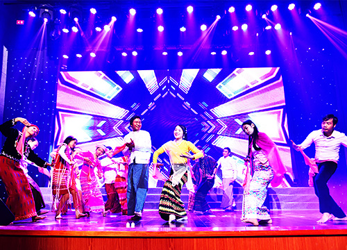 Myanmar students perform traditional national dance at the New Year's party