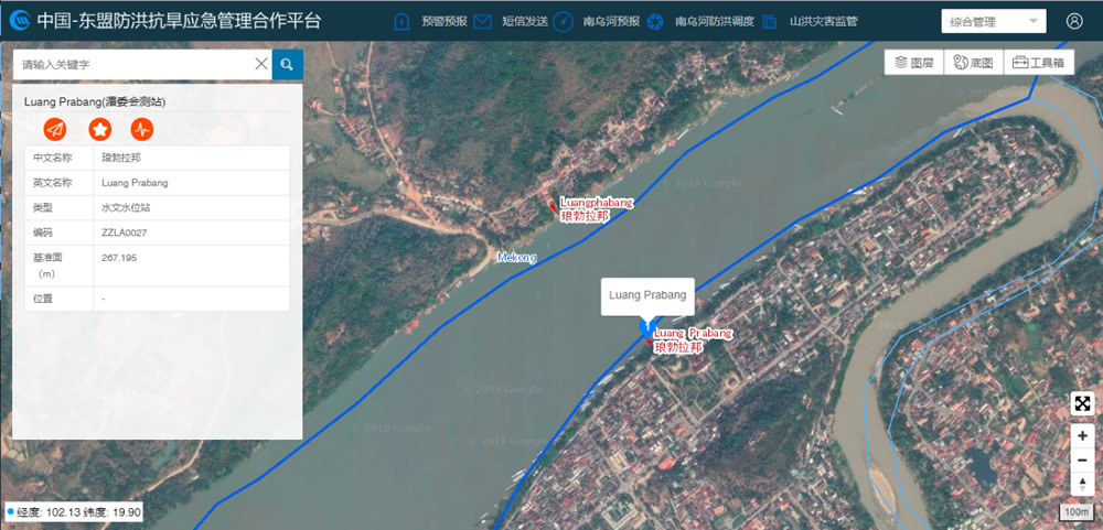 Based on geographic information technology, combined with manual collection and sorting, network crawling, timing synchronization and other data aggregation means, through the integration of basic geographic data, water conservancy thematic data, water and rainfall data and multimedia materials, the Sino-ASEAN countries emergency management platform for flood control and drought relief is formed, which provides information overview, data query and analysis services for basin managers. It provides historical and real-time data support for drought disaster analysis of Lancang-Mekong river basin in July 2019.