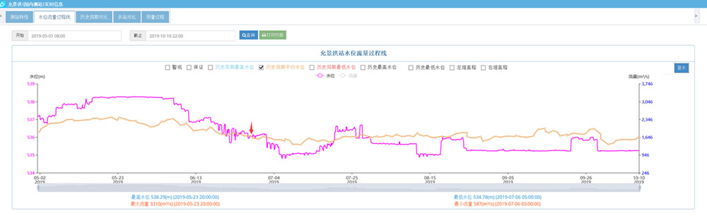 Fig.5 Analysis and comparison of Yunjinghong historical hydrograph in the Sino-ASEAN countries emergency management platform